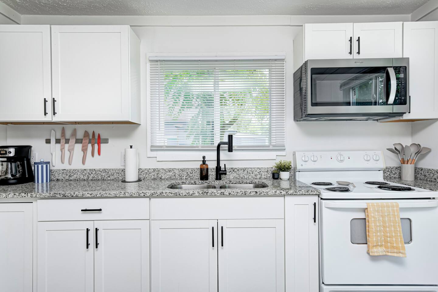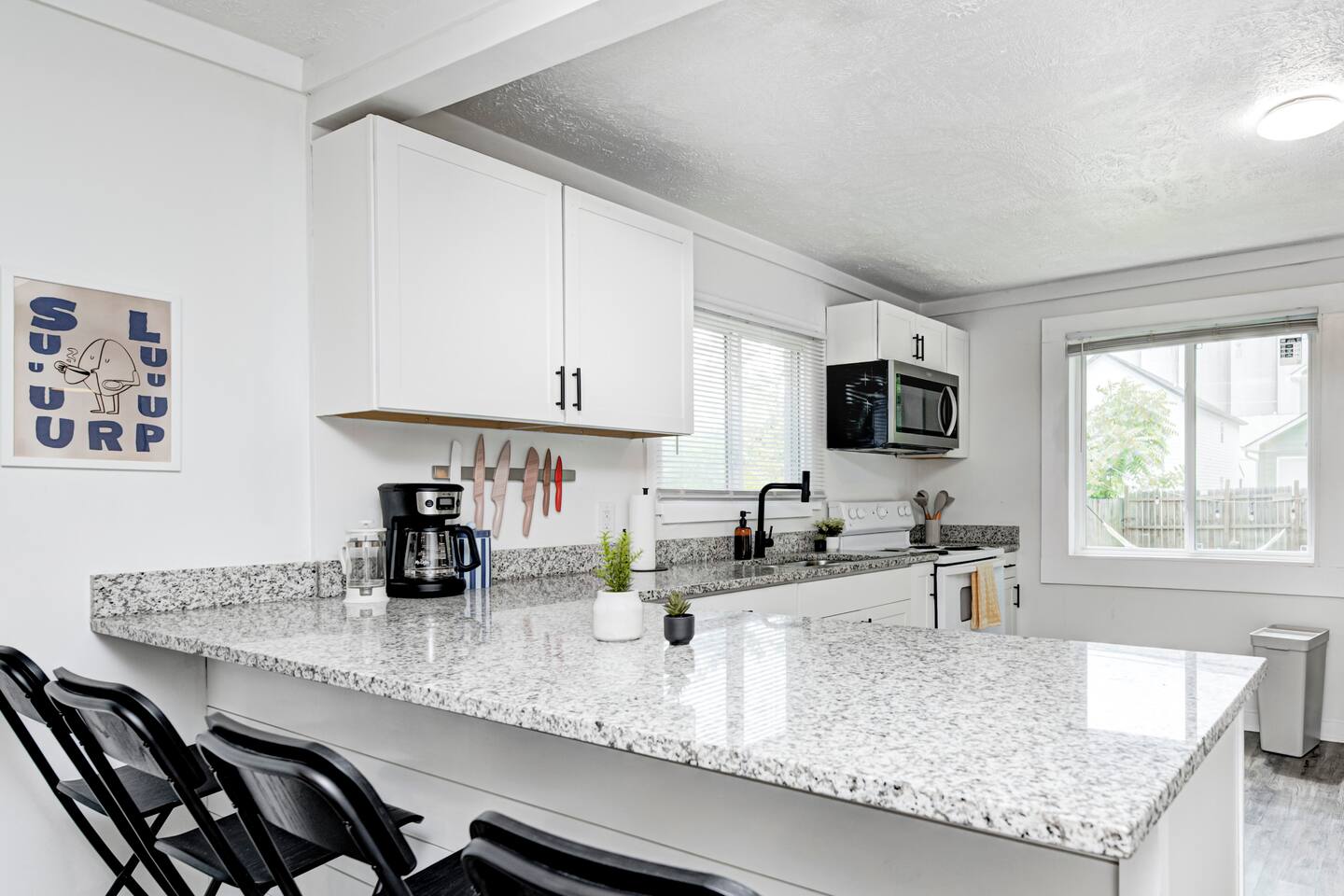 π Full Kitchen: The kitchen is fully-stocked and ready for home-cooked meals. With all the essentials like plates, bowls, and cups, but also a double-pot slow cooker, toaster, and coffee station. Enjoy meals at the dining table or grab a quick bite at the bar seating area.